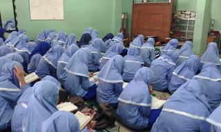 Hj.Marwiyah, S.Pd, memimpin Tadarus di Mushola Al Mutaqin, SMPN 29 Jakarta